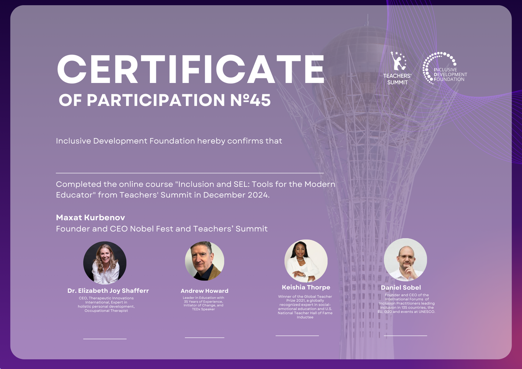 Сертификат с подписями международных экспертов
